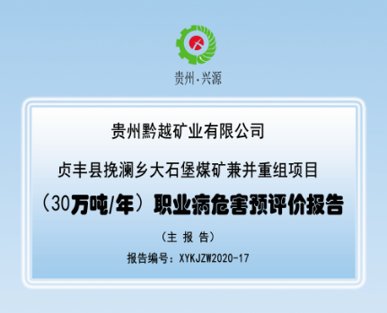 貞豐縣挽瀾鄉大石堡煤礦兼并重組項目 (30萬噸/年)職業病危害預評價報告
