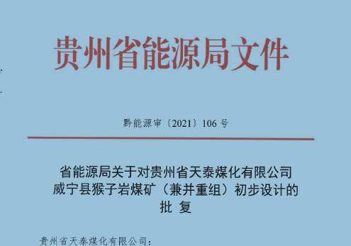 貴州省天泰煤化有限公司威寧縣猴子巖煤礦初步設(shè)計