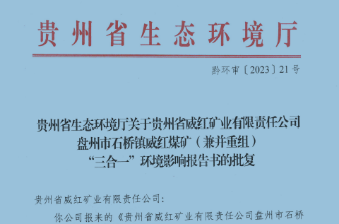 貴州省威紅礦業有限責任公司盤州市石橋鎮威紅煤礦(兼并重組)“三合一”環境影響報告書