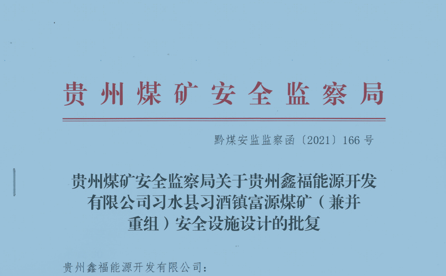 貴州鑫福能源開發有限公司習水縣習酒鎮富源煤礦安全設施設計