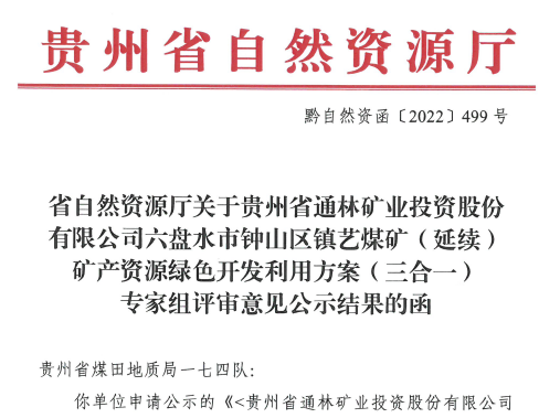 六盤水市鐘山區鎮藝煤礦(延續)礦產資源綠色開發利用方案(三合一)