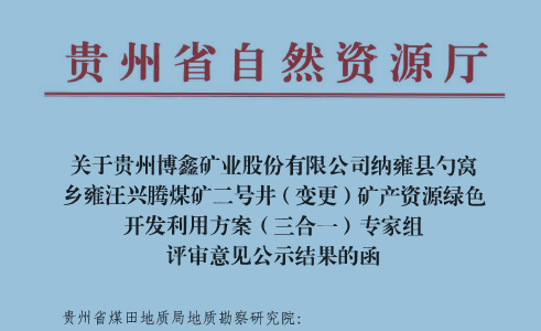 納雍縣勺窩鄉(xiāng)雍汪興騰煤礦二號井(變更) 礦產資源綠色開發(fā)利用方案(三合一)