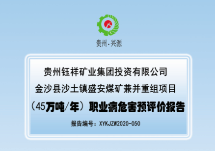 金沙縣沙土鎮盛安煤礦兼并重組項目職業病危害預評價報告