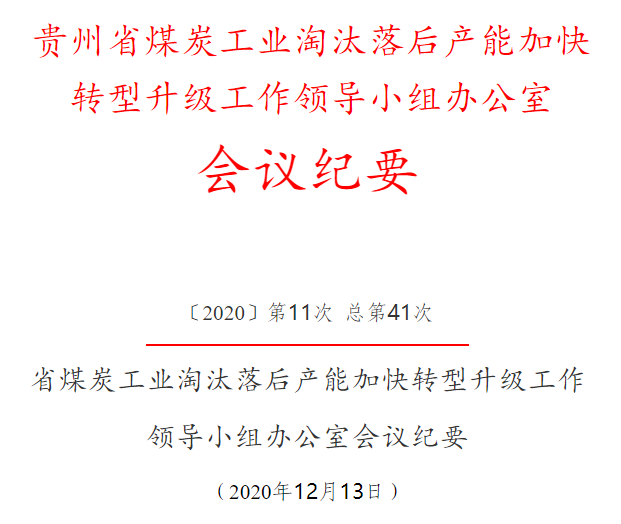 第41次貴州省煤炭工業(yè)淘汰落后產(chǎn)能加快轉(zhuǎn)型升級(jí)工作領(lǐng)導(dǎo)小組辦公室會(huì)議紀(jì)要