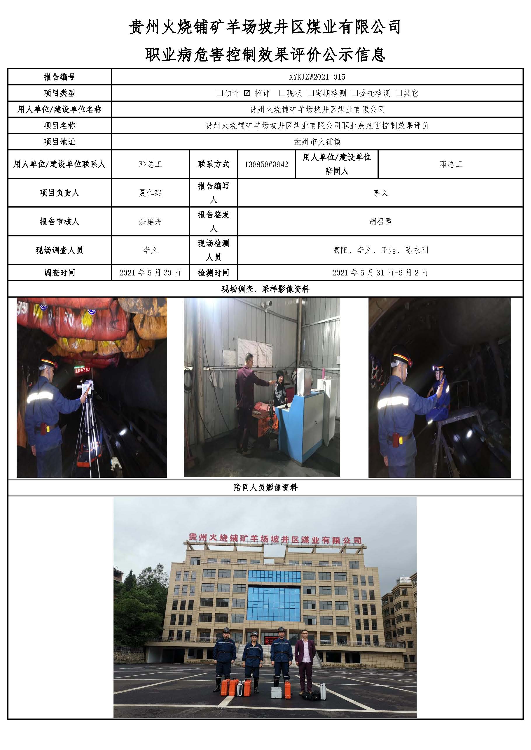 貴州火燒鋪礦羊場坡井區煤業有限公司 職業病危害控制效果評價公示信息