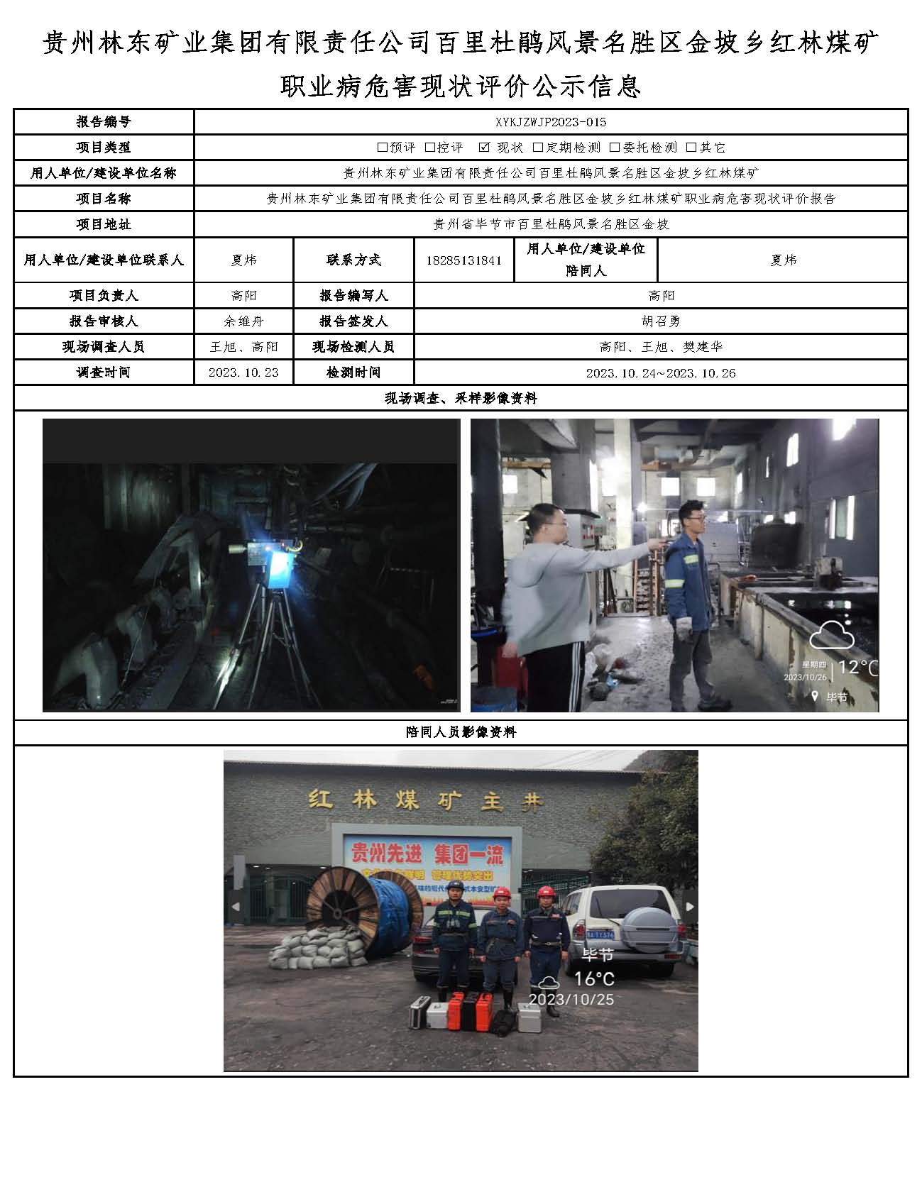 貴州林東礦業集團有限責任公司百里杜鵑風景名勝區金坡鄉紅林煤礦職業病危害現狀評價公示信息