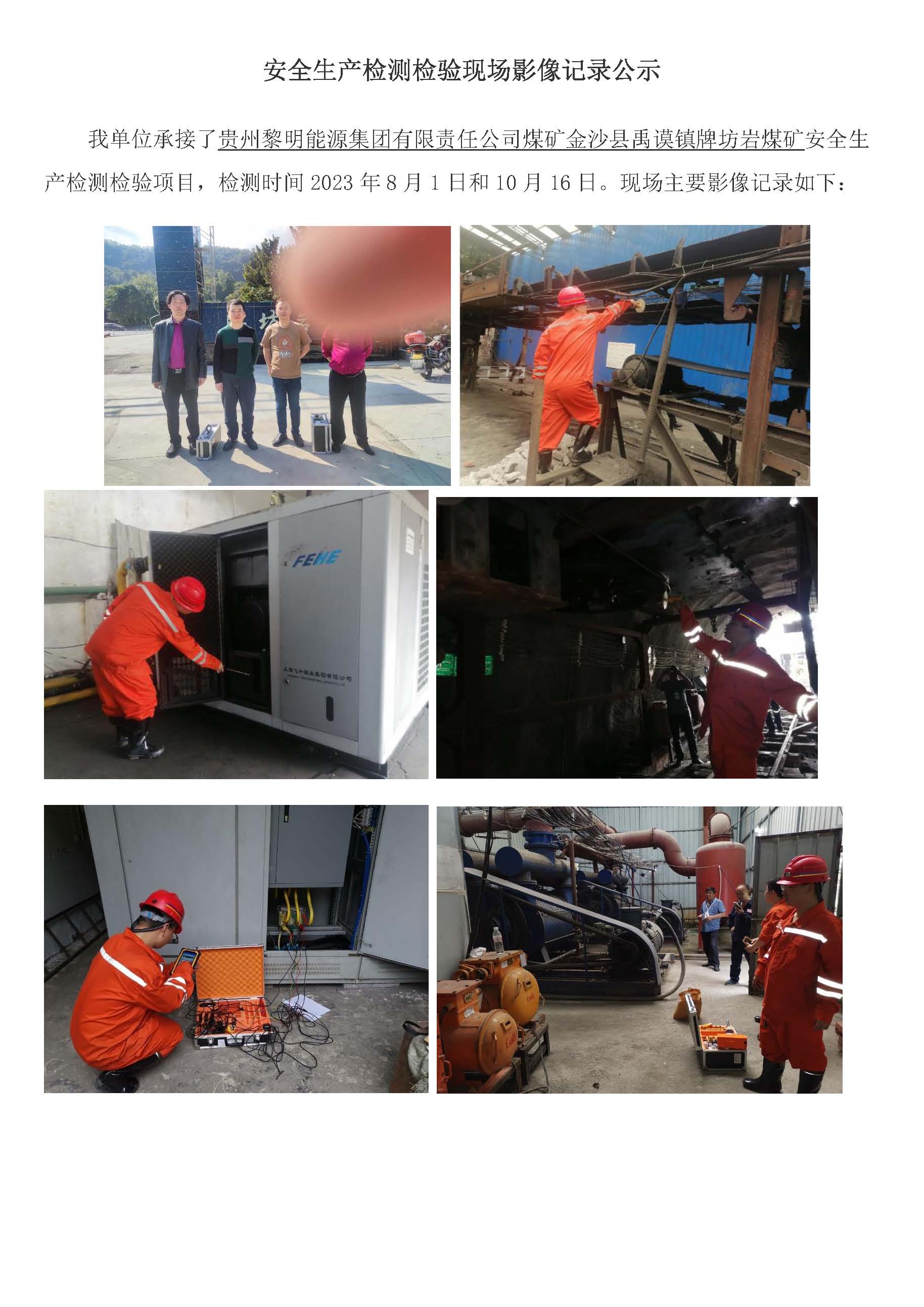 安全生產(chǎn)檢測檢驗現(xiàn)場影像記錄公示(貴州黎明能源集團有限責(zé)任公司煤礦金沙縣禹謨鎮(zhèn)牌坊巖煤礦)