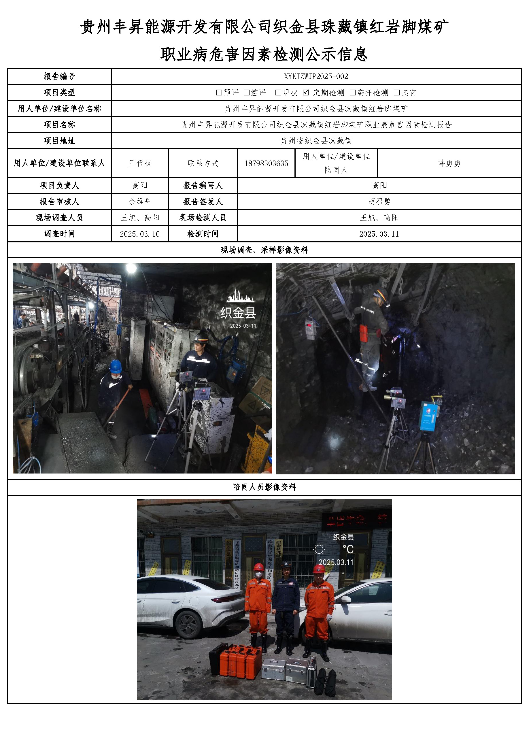 貴州豐昇能源開發(fā)有限公司織金縣珠藏鎮(zhèn)紅巖腳煤礦職業(yè)病危害因素檢測公示信息