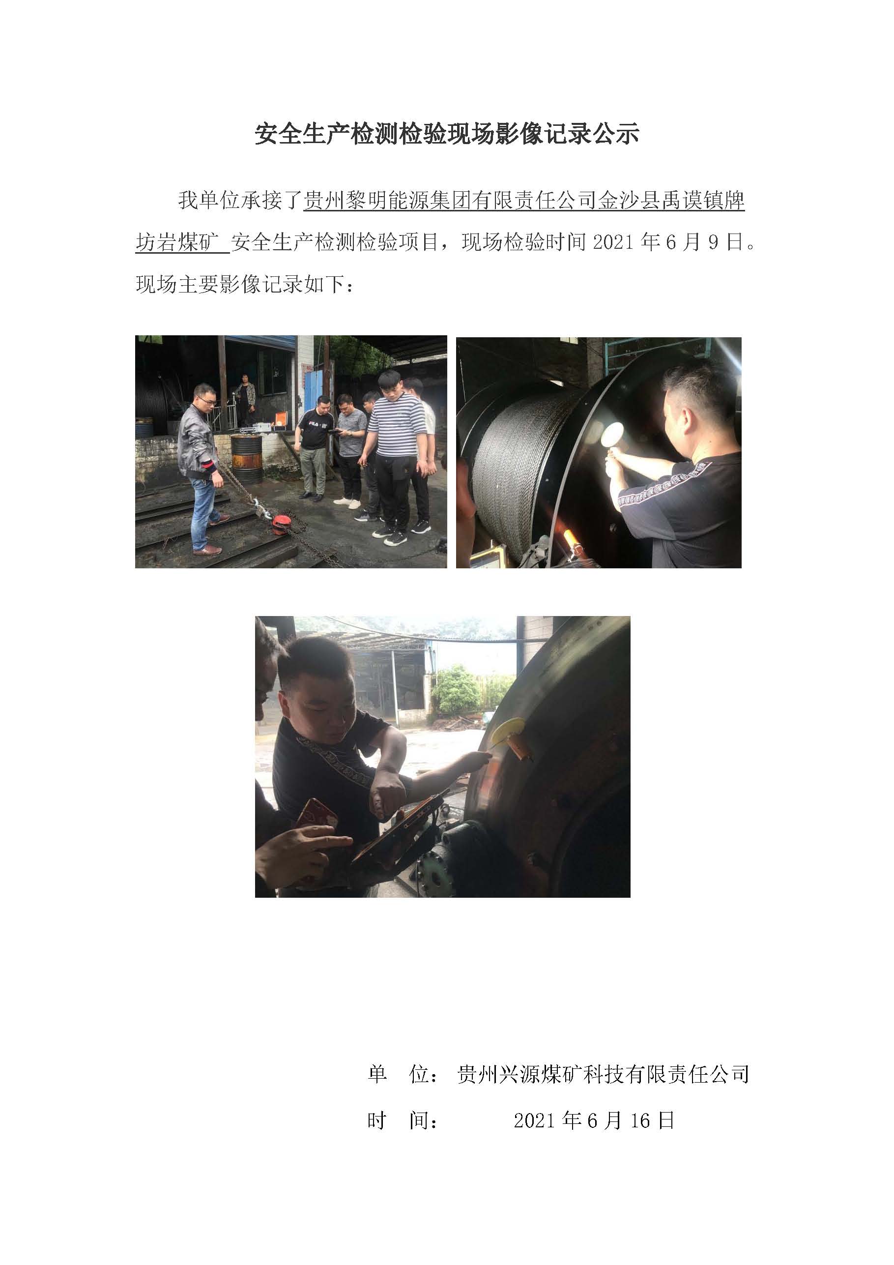 安全生產檢測檢驗現場影像記錄公示【貴州黎明能源集團有限責任公司金沙縣禹謨鎮牌坊巖煤礦】