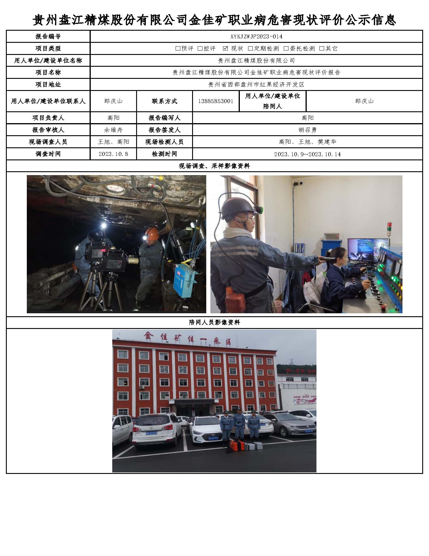 貴州盤江精煤股份有限公司金佳礦職業病危害現狀評價公示信息