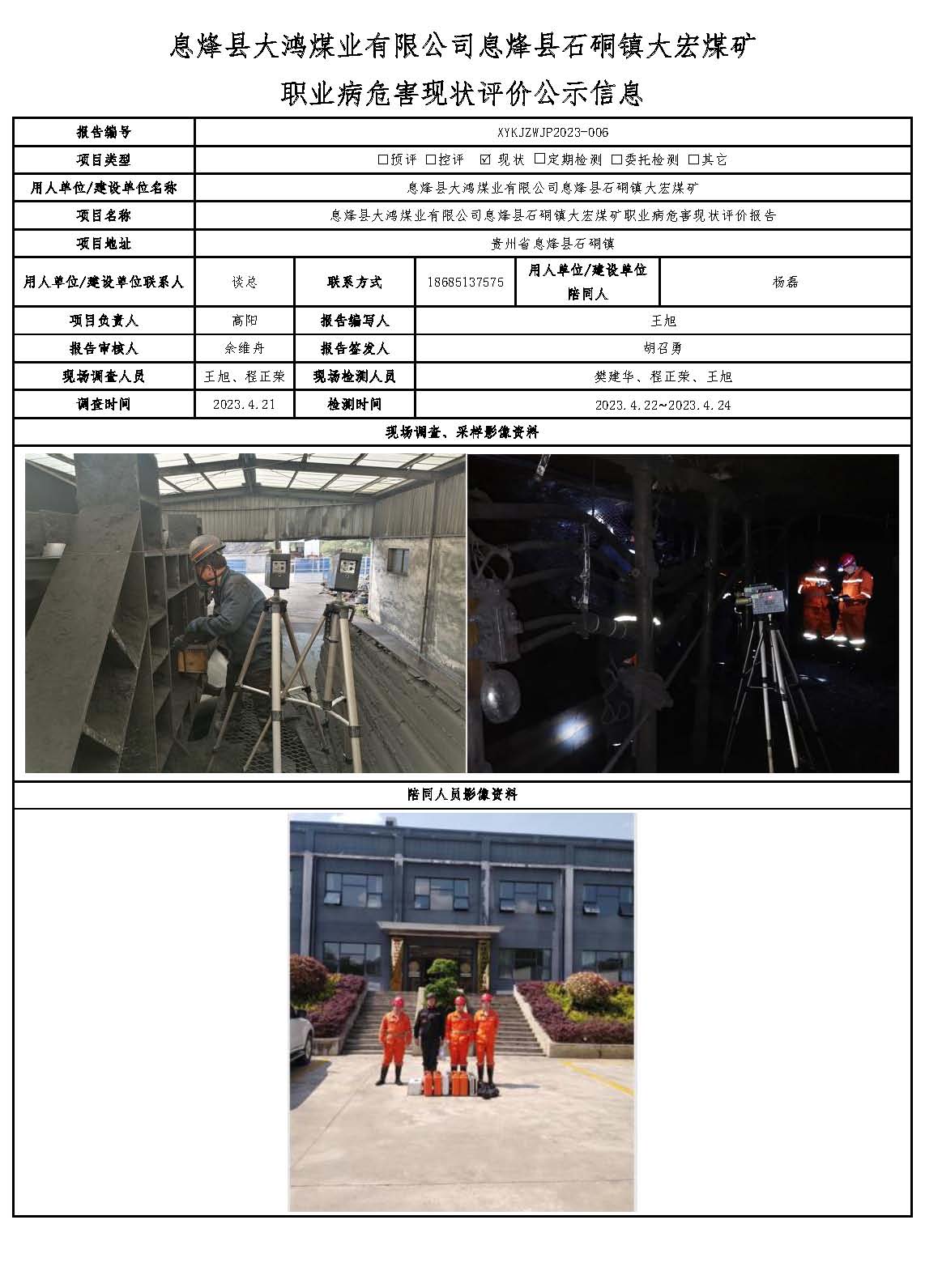 息烽縣大鴻煤業(yè)有限公司息烽縣石硐鎮(zhèn)大宏煤礦職業(yè)病危害現(xiàn)狀評價公示信息