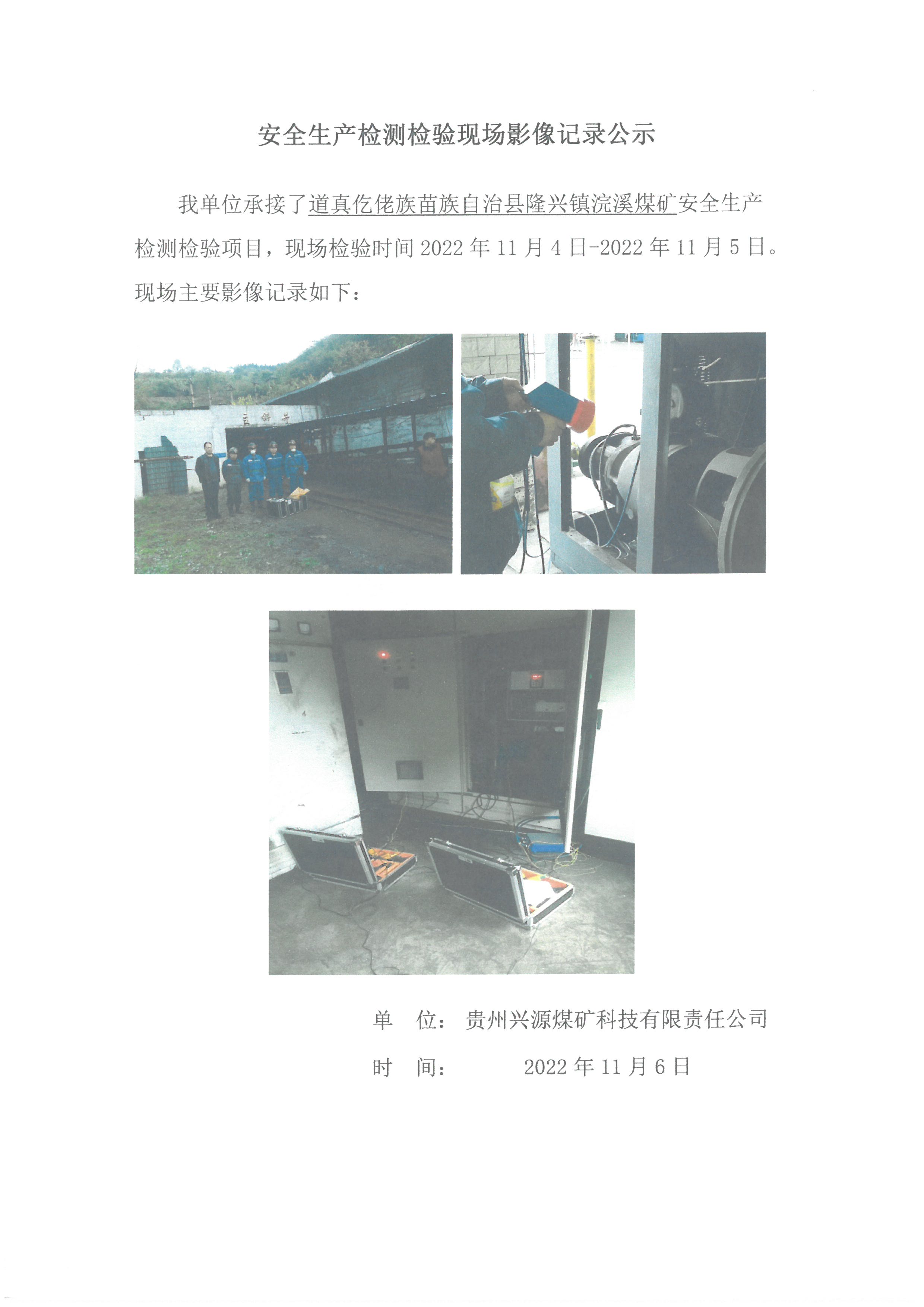 安全生產(chǎn)檢測檢驗(yàn)現(xiàn)場影像記錄公示【 道真仡佬族苗族自治縣隆興鎮(zhèn)浣溪煤礦】