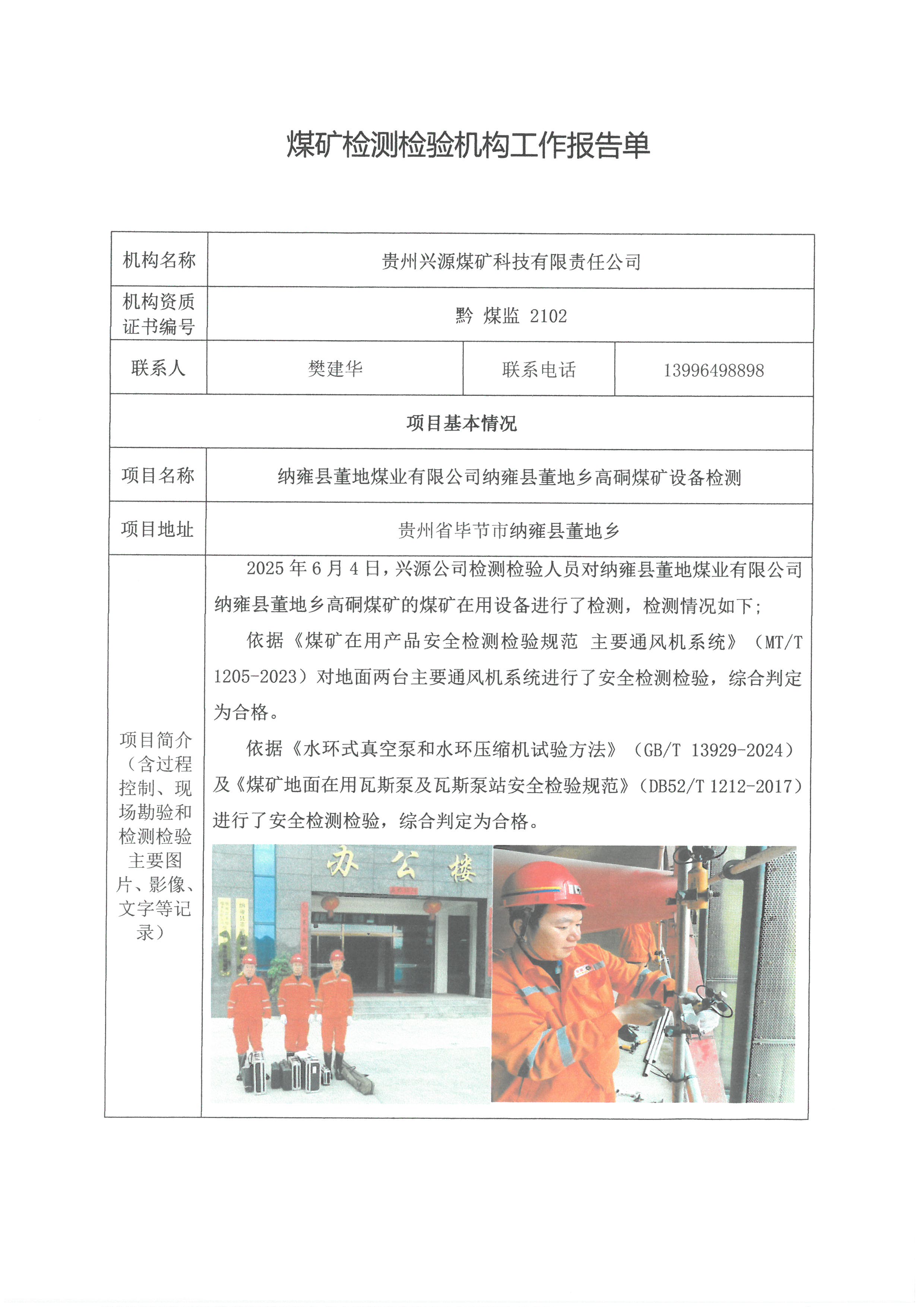 煤礦檢測檢驗(yàn)機(jī)構(gòu)工作報(bào)告單【納雍縣董地煤業(yè)有限公司納雍縣董地鄉(xiāng)高硐煤礦設(shè)備檢測】