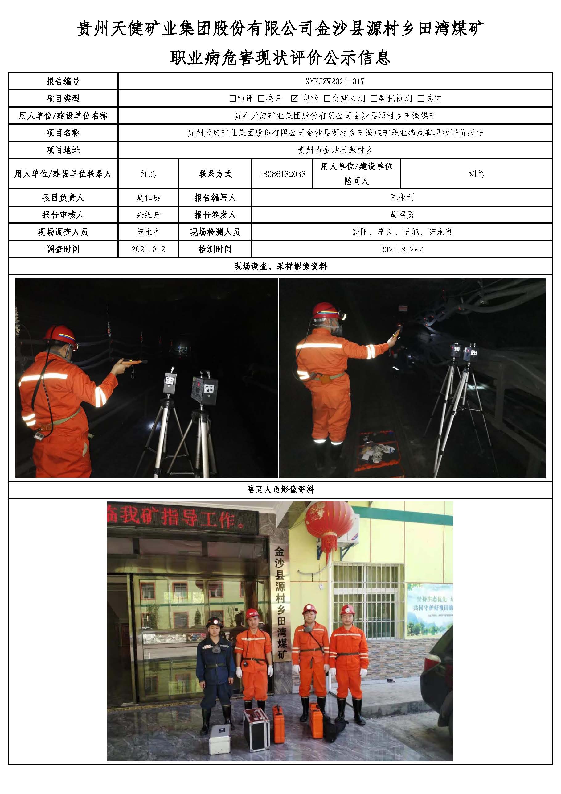 貴州天健礦業(yè)集團(tuán)股份有限公司金沙縣源村鄉(xiāng)田灣煤礦 職業(yè)病危害現(xiàn)狀評(píng)價(jià)公示信息
