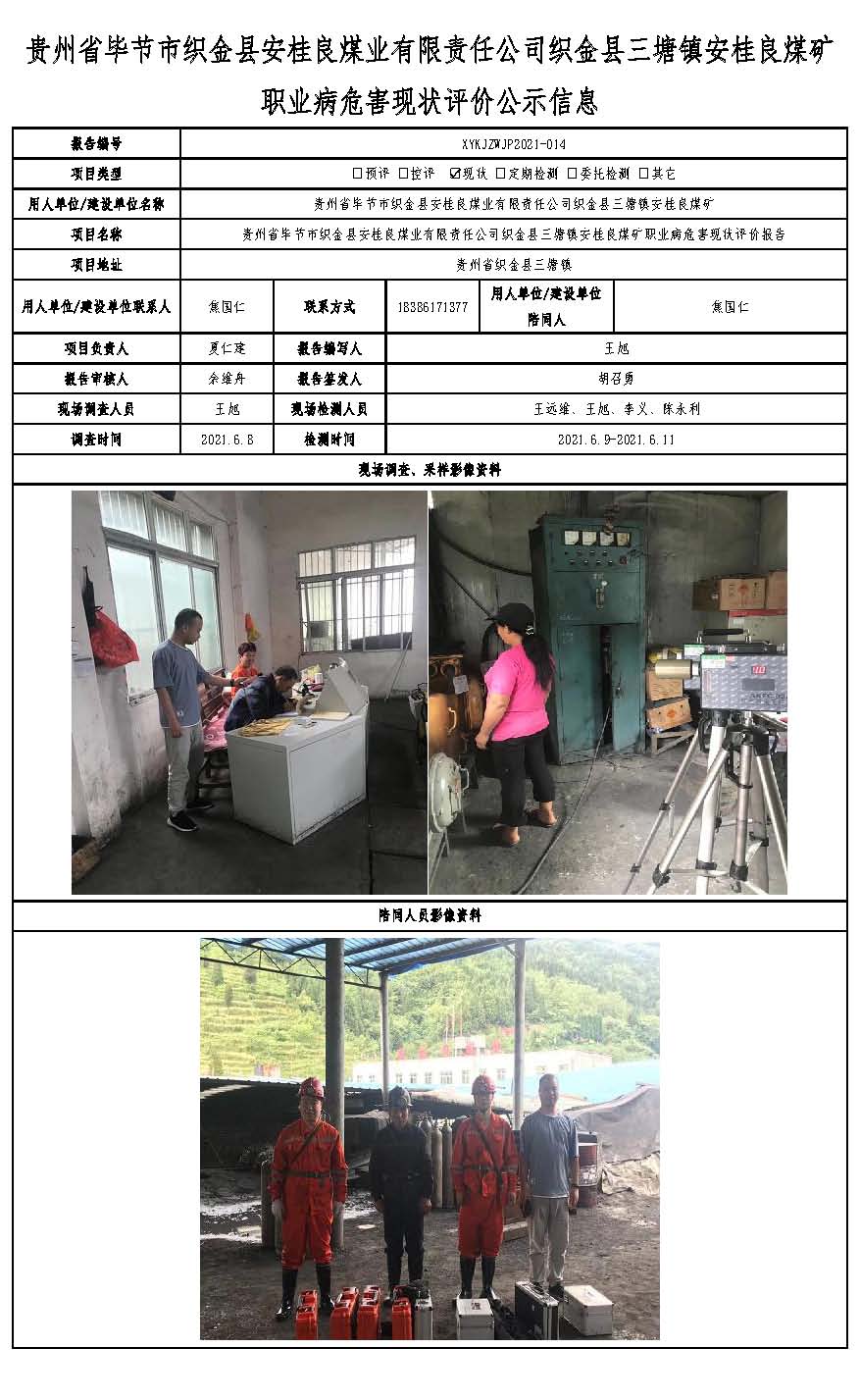 貴州省畢節(jié)市織金縣安桂良煤業(yè)有限責(zé)任公司織金縣三塘鎮(zhèn)安桂良煤礦職業(yè)病危害現(xiàn)狀評(píng)價(jià)公示信息