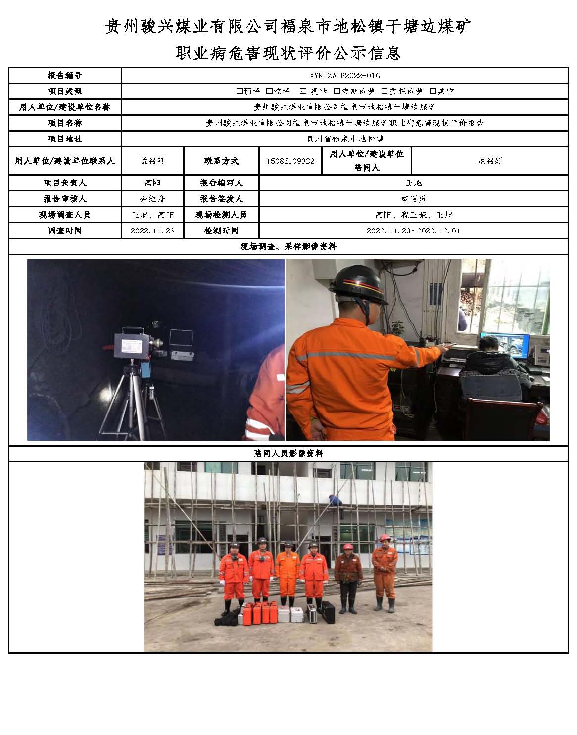 貴州駿興煤業(yè)有限公司福泉市地松鎮(zhèn)干塘邊煤礦職業(yè)病危害現(xiàn)狀評(píng)價(jià)公示信息